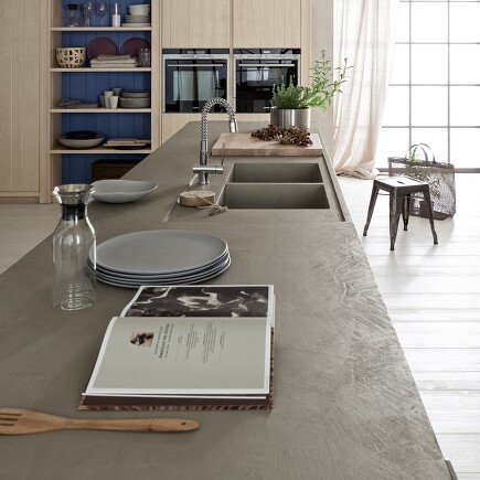 Beton ist wieder in Mode – auch in der Küche. Arbeitsplatten und ganze Küchenblöcke aus Sichtbeton geben der Küche das gewisse Etwas. Und jedes Stück aus echtem Beton ist ein Unikat! Achten Sie bei der Auswahl darauf, dass die Oberfläche poliert wurde, damit die Poren geschlossen sind. Denn Beton ist zwar kratzfest, wasserfest, hitzebeständig und pflegeleicht, durch die poröse Oberfläche aber auch anfällig für Flecken. Deshalb sollte man die Oberfläche auch regelmäßig wieder versiegeln – am besten mit Öl oder Naturwachs. Aber Tipp: Es gibt auch Fronten und Arbeitsplatten in Betonoptik. Nicht so schwer, aber ebenso gut aussehend!